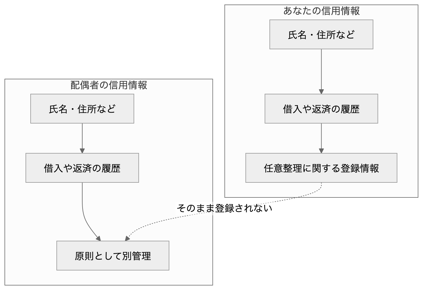 図のように、あなたの信用情報と配偶者の信用情報は原則として別々に管理されます。